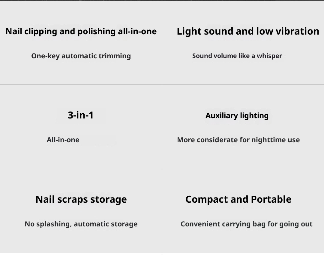 Bring a sense of ease to your daily grooming with an nail clipper that truly makes life simpler. This automatic electric nail tool helps you achieve clean, neat nails effortlessly, so you can focus on feeling great about yourself instead of fussing with clippers. Users appreciate how relaxing and fast their nail care routine becomes, leaving them more time for the things they enjoy. With nails that look well‑cared‑for, you’ll feel more confident in every handshake, selfie, and moment of self‑expression. Make nail grooming a quick, uplifting part of your day that brings small joys and big confidence.